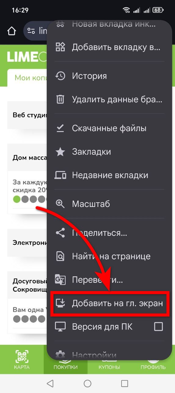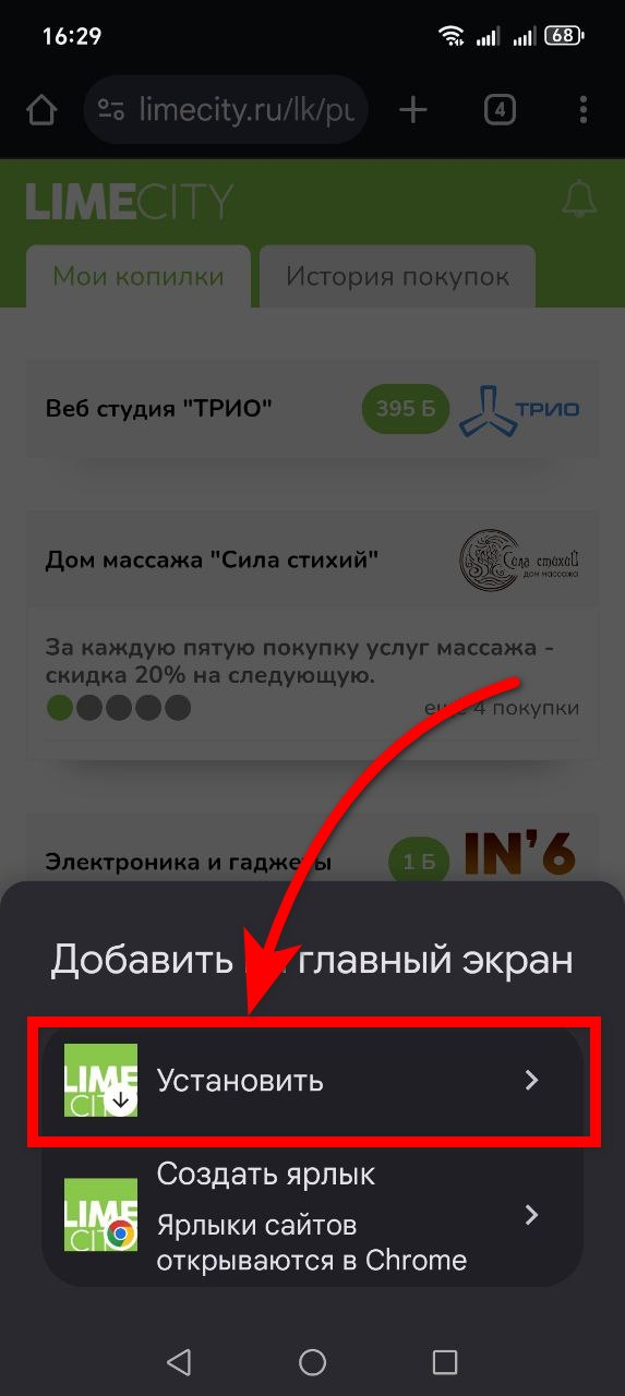 После того, как вы войдёте в свой кабинет, установите иконку на домашний экран, выбрав подходящую инструкцию ниже