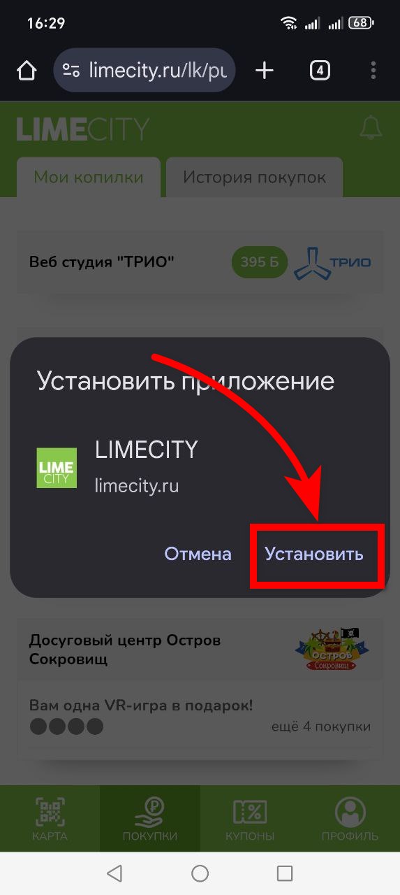Выберите пункт «Установить».